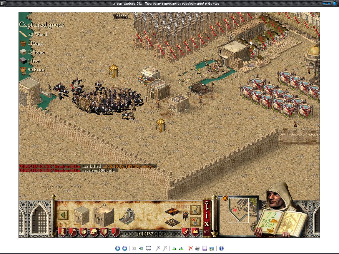 | после того как я разгромил его армию в открытом поле он засел у себя в замке...подойти было трудно так как он использовал волчьи ямы..после того как мои пикинёры выкопали ров у него появились арбалетчики...во время осады его замка он обошёл меня горсткой рабов и тараном и пробил ворота...я во время увидел его обходной манёвр и уничтожил таран рабов и несколько ассасинов..после этого я стал осаждать его крепость где находился король...на ней было полно щитов и несколько абралетов с пращниками,вокруг крепости был ров...когда у него не осталось арбалетов он вывел короля и мои конные лучники убили его в ближнем бою... ДО ЭТОГО Я СЧИТАЛ ЧТО X2X НЕ ПОБЕДИМЫЙ КЛАН ТАМ ВСЕ ОЧЕНЬ СИЛЬНЫЕ ЭКСПЕРТЫ...ПОСЛЕ РАЗГОВОРА С АРТУРОМ У МЕНЯ ВОЗНИКЛИ СОМНЕНИЯ,ПОСЛЕ СЕГОДНЯШНЕЙ ПОБЕДЫ Я ПОНЯЛ ЧТО ИХ ВСЕХ МОЖНО ПОБЕДИТЬ...